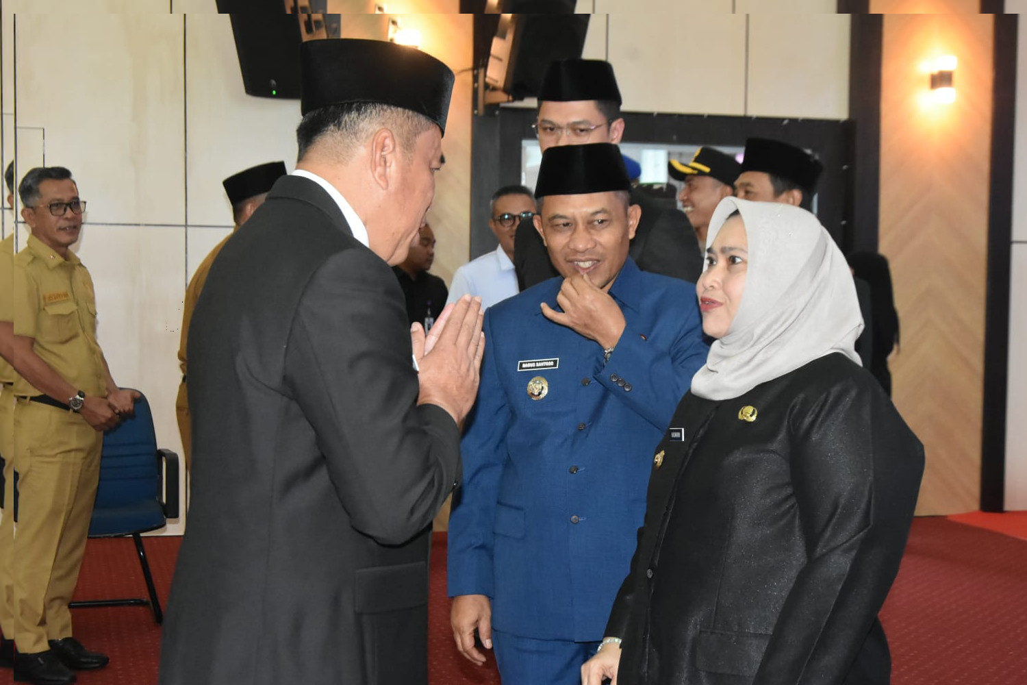 Prosesi pengambilan sumpah dan pelantikan ditutup dengan penandatanganan berita acara, serta pemberian ucapan selamat dari Bupati, Wakil Bupati, dan para tamu undangan yang hadir.