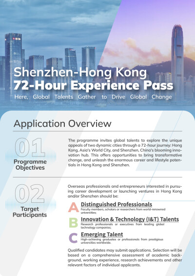 It is learned that the Shenzhen and Hong Kong governments will arrange customized itineraries based on applicants’ backgrounds and needs and provide comprehensive support. This includes assistance with obtaining Shenzhen entry visas, guidance and services throughout the trip, and subsidies covering accommodation, transportation, and meals. Global elites can access the application form by just scanning the official QR code and complete the application by submitting it to the email address designated by Qianhai or Hong Kong.