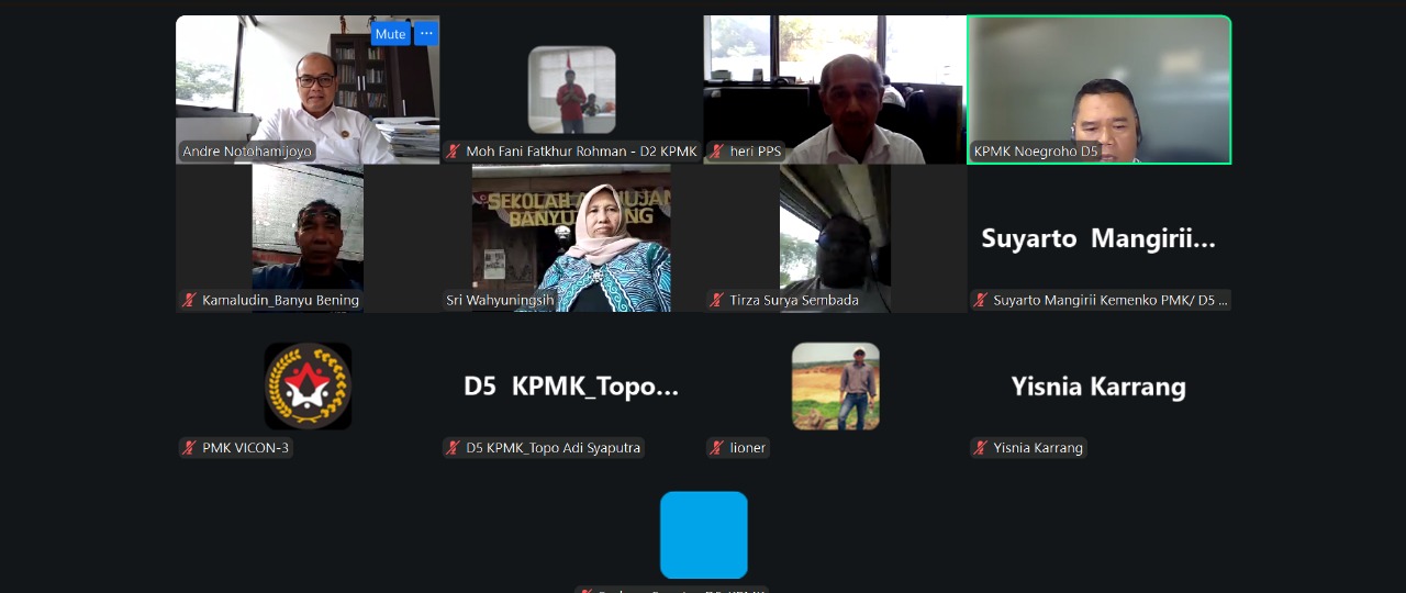 Rapat dipimpin oleh Asisten Deputi Pengurangan Risiko Bencana Andre Notohamijoyo dan dihadiri oleh Dekan Sekolah Vokasi UGM Prof. Dr. Agus Maryono beserta tim dari UGM, Komunitas Banyu Bening dan internal D5 Kemenko PMK.